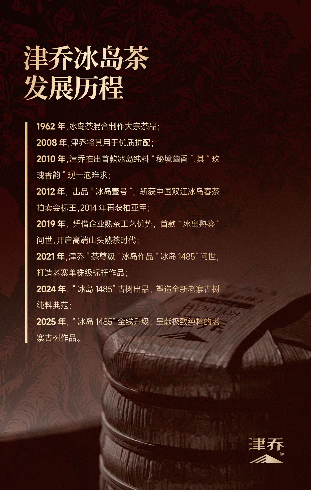 从1962到2025,津乔与冰岛的故事还在继续,正如茶席间那句感慨:“巅峰不是结束,是把更好的,留给下一杯。”津乔冰岛1485首款熟茶现已在全国门店上市,熟茶发烧友们,这杯“造极”,值得赴约。