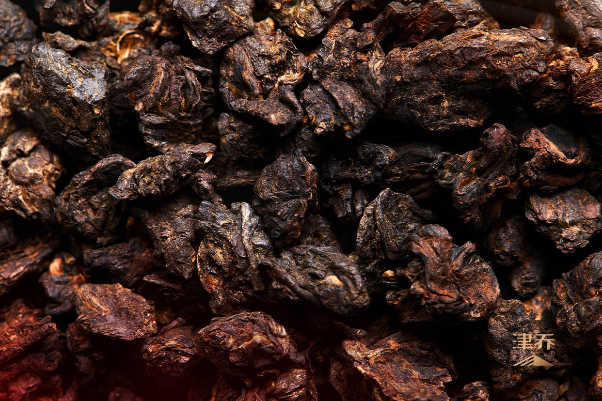它并非刻意雕琢的产物,而是漫长发酵与时光陈化下古树熟茶自然凝结的精华。这便是津乔“赤晶®”,一款“胶感”满满的年份天然茶化石。