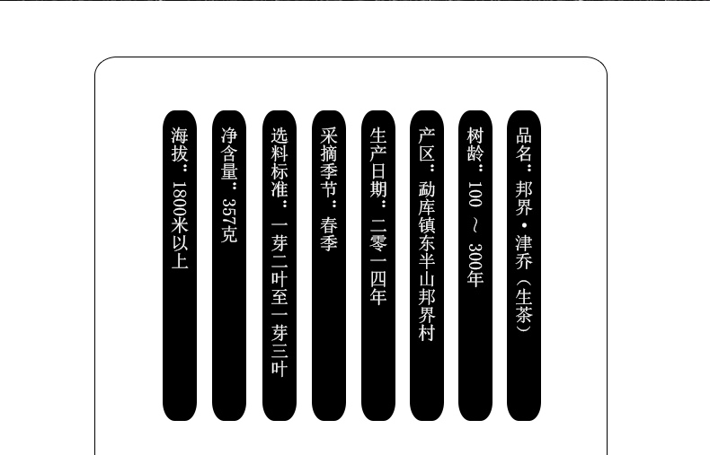 品名:邦界·津乔 2014年 纯料古树系列 生茶 357g/饼