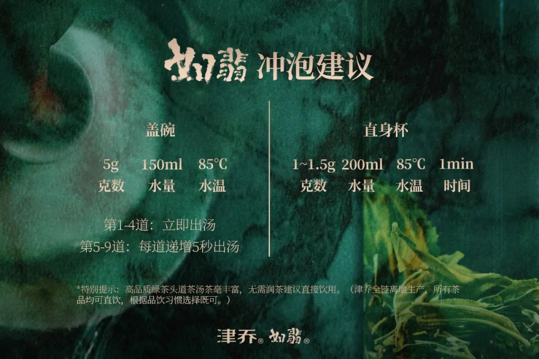 2022年,津乔重拾经典,精选冰岛产区优质春季鲜叶,以蒸青工艺打造首款高端滇绿茶“如翡®”,完美诠释滇绿茶“鲜而厚”的美妙风韵,今日开汤品鉴。