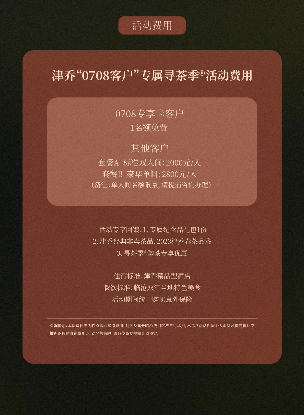 首页 > 每日动态 > 企业新闻 茶文百科 企业新闻 新品上市 时光之约·相遇津乔,津乔“0708客户”专属寻茶季®报名开启 2023-07-14 16:30 来源:津乔|匠制纯粹好茶 关注量:1776 上一篇:真冰岛,难复刻,别让“真假难辨”毁了你的冰岛情结 下一篇:何以传世,唯有极致,冰岛公元1485老寨单株即将携传承新品上市 看完觉得怎么样?点个赞再走吧 已有0人点赞 还不够?分享给朋友 热门推荐RECOMMENDED 15日 2025-12 熟茶季压轴礼,津乔陈年天然茶化石“赤晶®”新版即将推出 自然凝结,赤红如晶熟茶季压轴礼,年份天然茶化石津乔新版“赤晶”即将推出 12日 2025-12 熟茶里的讲究,了解过才能喝得更明白 敷衍者只得其温,讲究者方得其魂熟茶里的讲究,了解过才能喝得更明白 10日 2025-12 冬深一寸,茶暖一程,“乙巳·子期®”两份尊享礼送出 冰岛谷花,媲美春韵乙巳蛇饼,生肖典范乙巳子期第二份好礼送出 02日 2025-12 金汤玉露,敬颂冬绥,JIN TEA特调“桂花红茶”暖心上市 金汤玉露,敬颂冬绥东方雅韵,暖意随身JINTEA桂花红茶暖心上市这泼天的富桂,请接住! 01日 2025-12 茶无贵贱≠品质无差,喝茶这件事本就该有讲究 喝茶别将就!慢沏细尝,方见从容真味 27日 2025-11 说好喝茶减肥,可为什么“我”越喝越饿? 喝茶想瘦反饿慌促消耗糖是真相喝茶时,可以配些茶点