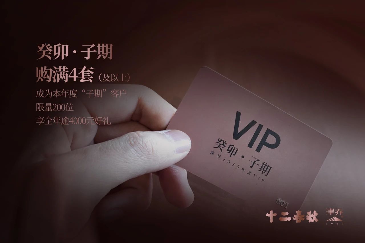 子期®诞生于“十二春秋®”预售,津乔每年年初推出系列产品,然后在购满4套及以上的客户中按序选出本年度的“子期®VIP客户”。全年享受逾4000元的不定期专属茶礼。