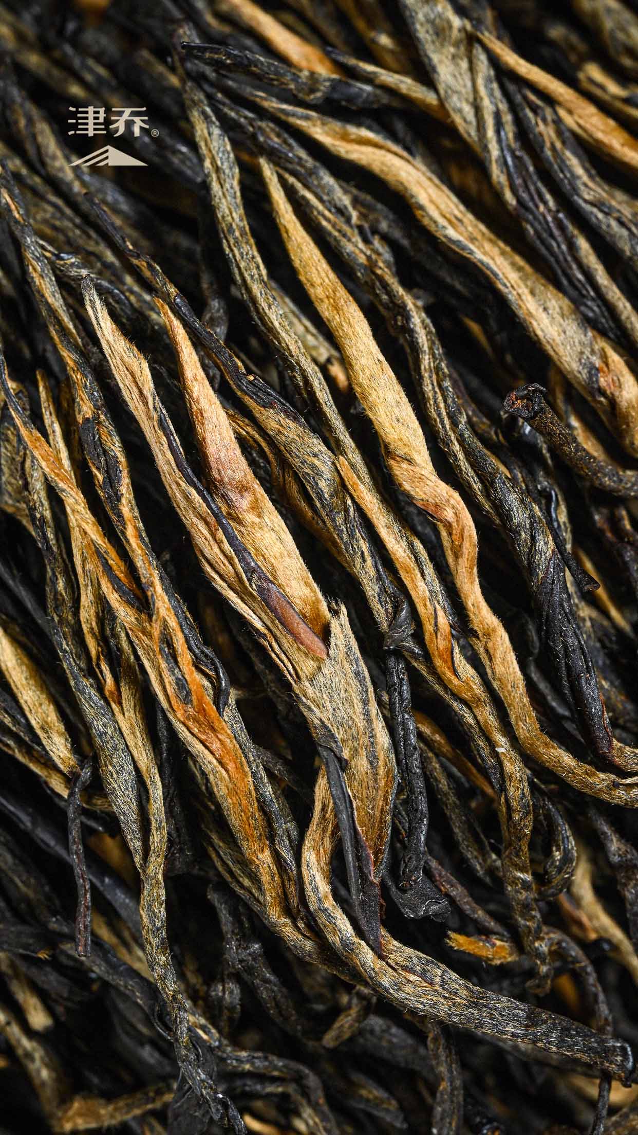 就比如津乔刚上市的古树晒红“传承1962”,开袋赏茶,根根直立(手工理条),形态规整,金毫密布,具有很高观赏性。