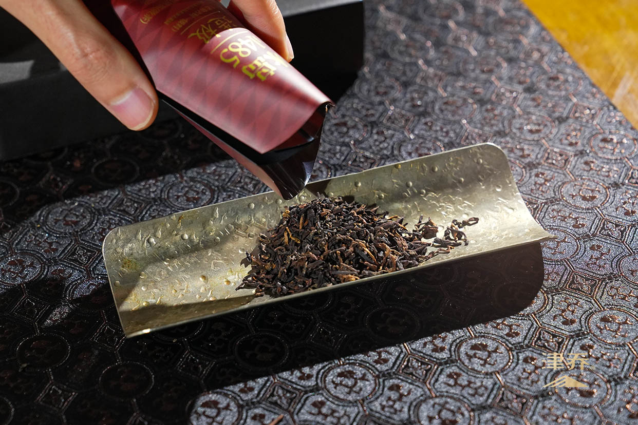 今日立冬,津乔茶艺师们围坐茶桌,开始这场期待已久的品鉴。取茶,剪开茶袋,一级选料的干茶褐润秀丽,金豪显露,未泡已飘散出清雅的陈香。