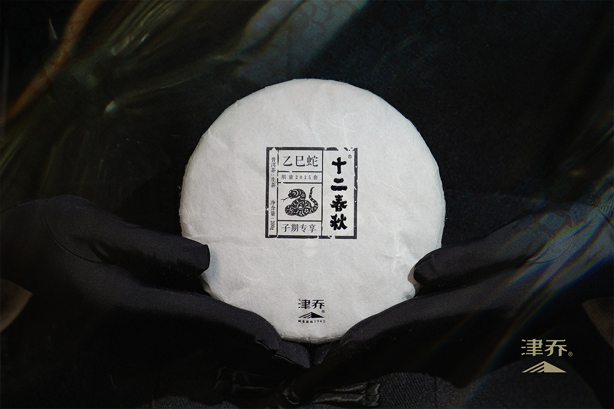 2025乙巳蛇年以“双立春”天象开场,叠加倒春寒淬炼,造就了津乔十二生肖茶史上最具戏剧张力的原料基底。这款茶饼与“十二春秋®·乙巳蛇”成品套装同树同源,精选“勐库西半山+东半山+冰岛产区”的优质古树茶菁制作。