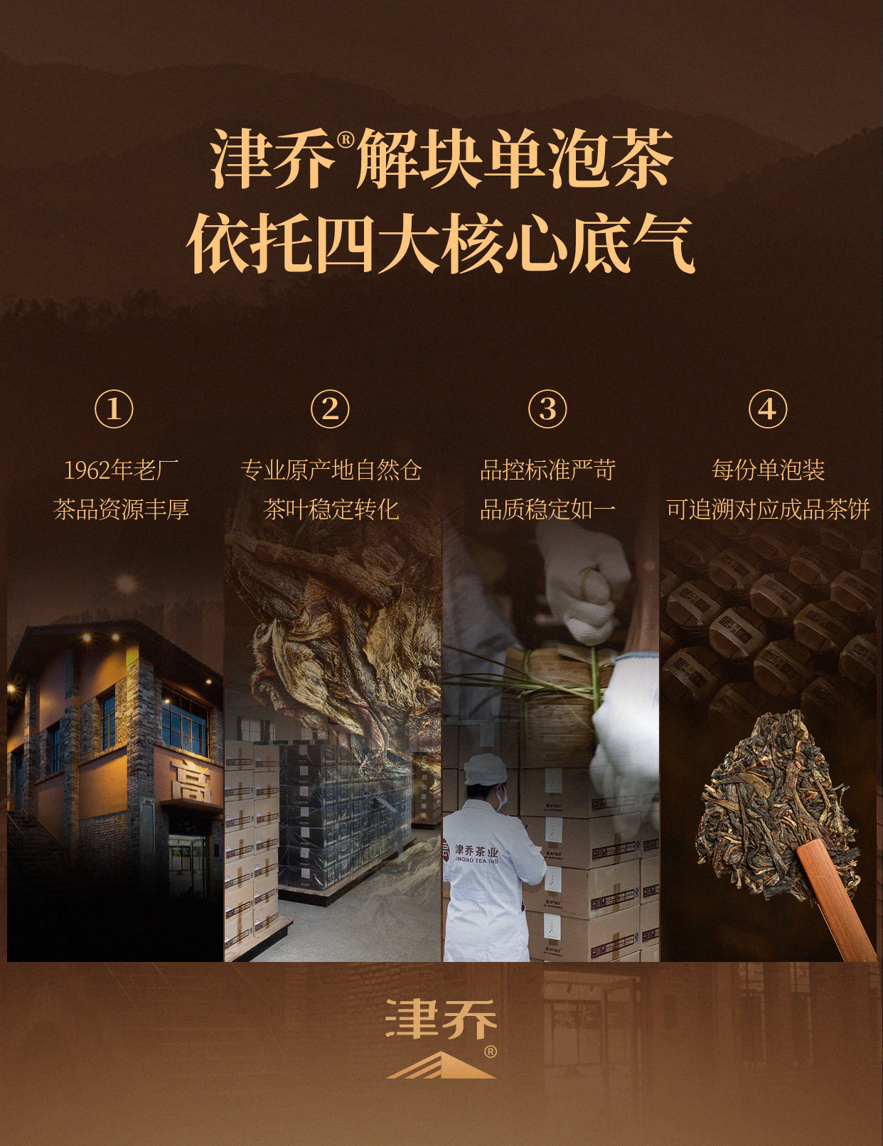 △津乔4大经典款单泡装,均是成品正装解块,韵味与茶饼一致。
