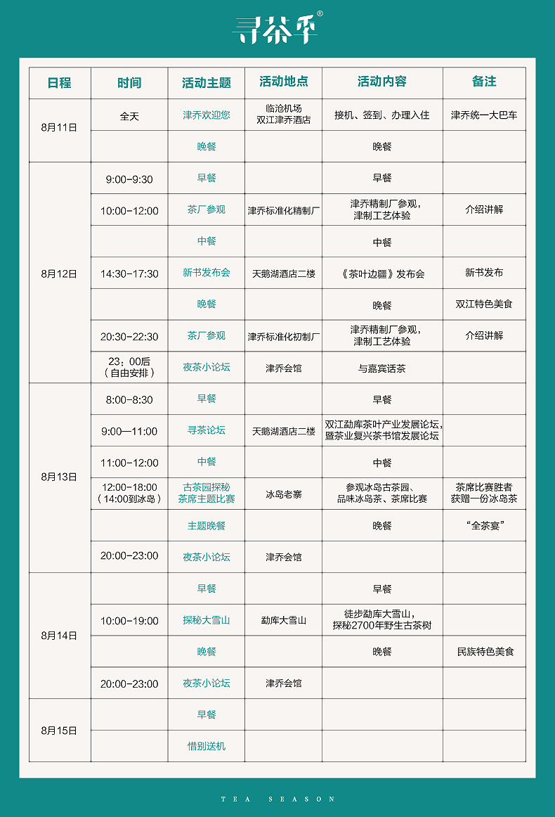 在茶山中寻茶,最无法替代的是心境,与心境有关的,是你的感受力。津乔寻茶季,将开启一段最具感受力的寻茶之旅。旅行即将开始,旅行没有终点,希望你能一直保持好奇、思考和观察。带上感受力,每个季节都是最好的季节,这就是“寻茶季®”。2017年8月,寻茶季®即将向您发出邀请!