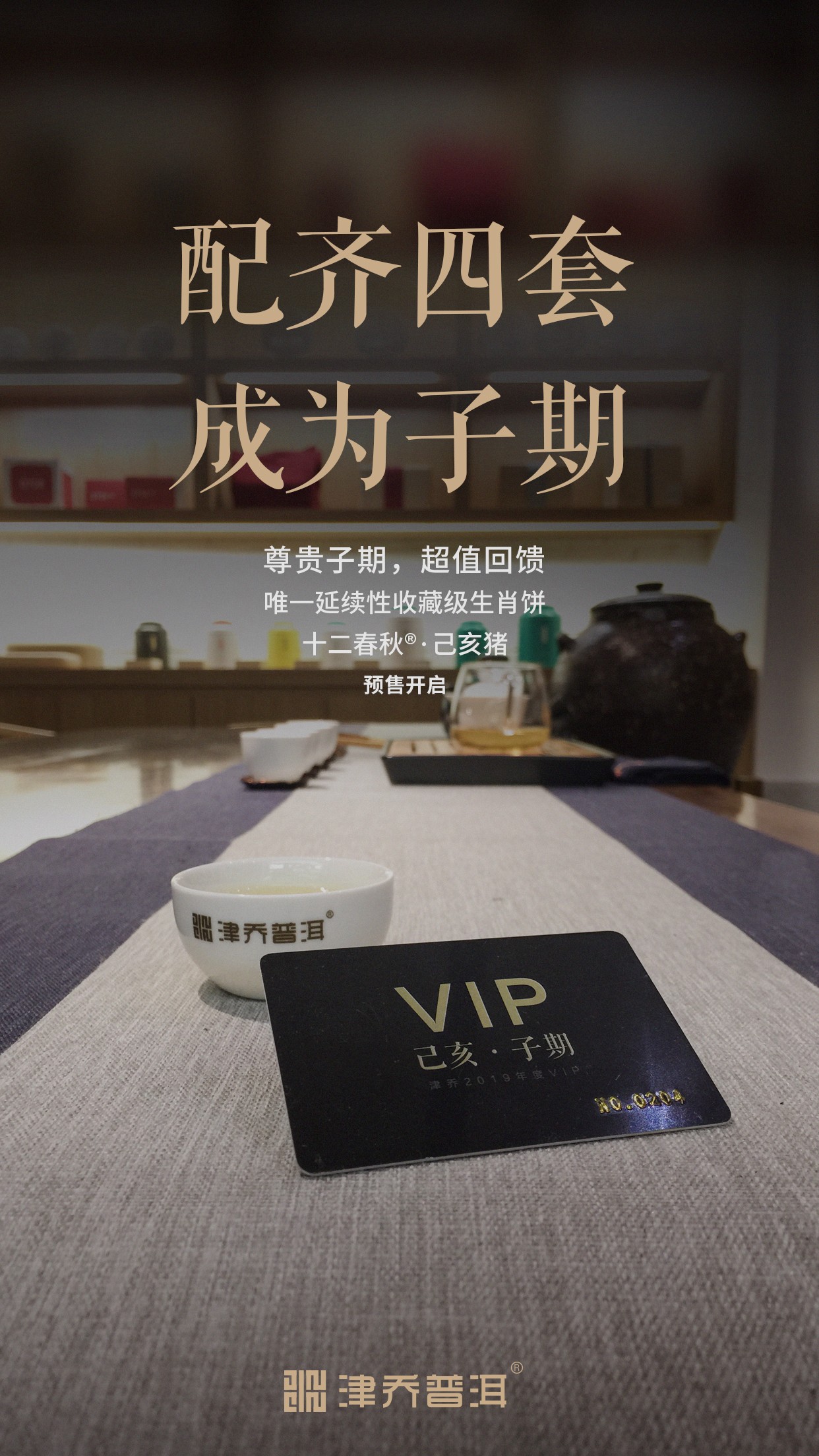 2019年,津乔特别为己亥·子期客户定制专属VIP卡,凭卡领茶,彰显尊贵身份。