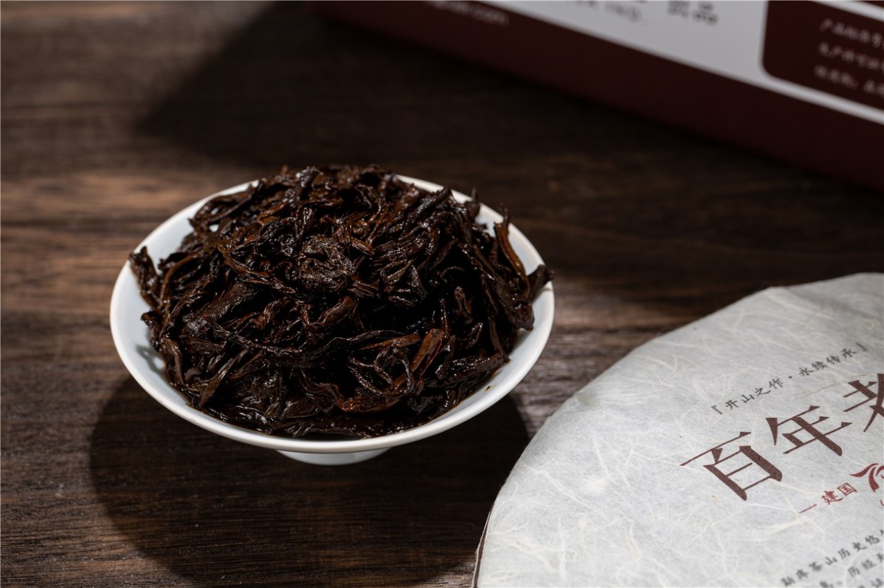 百年老树(特制)熟茶,精选百年树龄老树春茶用料,造就了其内质的丰盈,为茶增加了厚重而甜美的气韵。优良选料、精细工艺,成就品质高度。
